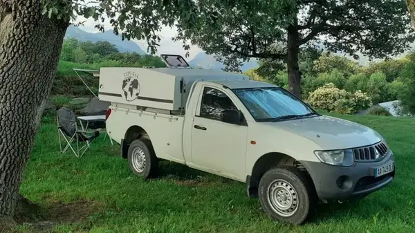 Внутри можно установить два или три спальных места. Также разместили раскладной стол и небольшую кухню
