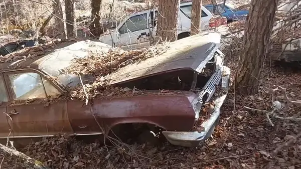 Старинные машины стоят на свалке рядом с современными и менее ценными моделями