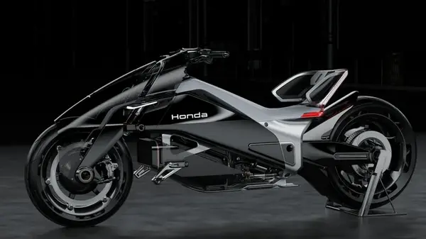 Электрический мотоцикл Honda EV Outlier отличается футуристическим клиновидным дизайном с большим прозрачным обтекателем впереди