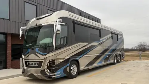 В основе Newell 1849 лежит 13,7-метровый трехосный автобус мощностью 785 сил с выдвижными боковыми секциями