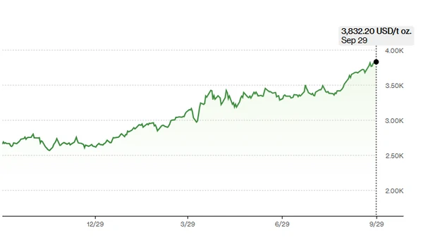 Цены на золото впервые превысили 3800 долларов | |