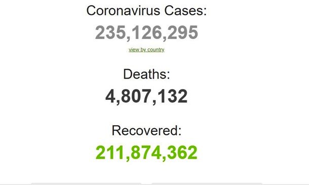 За месяц число новых случаев коронавируса в мире сократилось на четверть, свидетельствуют данные Worldometers по состоянию на субботу, 2 октября.Если в августе выявили 20 млн новых заболевших, то в сентябре только 15 млн. На данный момент число случаев COVID-19 составляет 235 126 295, из них выздоровели 211 874 362 человека. Количество умерших возросло до 4 807 132. ![]()