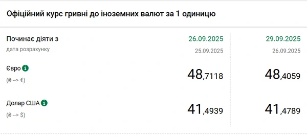 Национальный банк Украины (НБУ) снизил курс доллара к гривне. Доллар подешевел после роста до максимума с середины августа. Об этом сообщает РБК-Украина со ссылкой на данные на сайте регулятора. Официальный курс на 29 сентября 2025 года установлен на таком уровне: 41,4789 гривен за 1 доллар. Официальный курс евро составит 48,4059 гривен за 1 евро (-0,3059 грн).