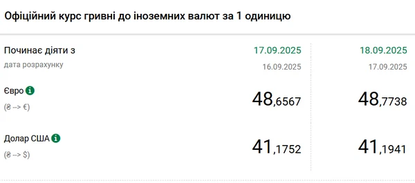 Национальный банк Украины (НБУ) повысил курс доллара к гривне. Доллар подорожал после трех дней снижения. Об этом сообщает РБК-Украина со ссылкой на данные на сайте регулятора. Официальный курс на 18 сентября 2025 года установлен на таком уровне: 41,1941 гривен за 1 доллар (+0,0189 грн). Официальный курс евро составит 48,7738 гривен за 1 евро (+0,1171 грн).