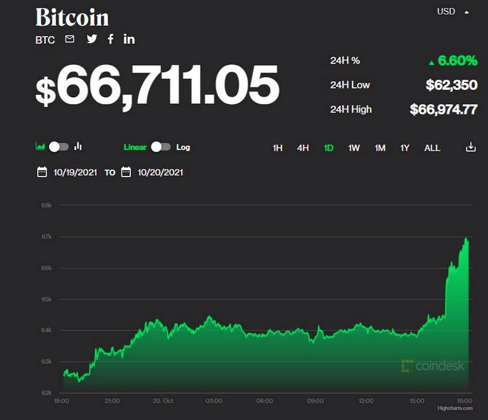 Курс биткоина побил рекорд, впервые превысив $66 000 | |