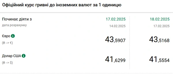 Национальный банк Украины (НБУ) снизил курс доллара к гривне. Доллар дешевеет второй день подряд. Об этом сообщает РБК-Украина со ссылкой на данные на сайте регулятора. Официальный курс на 18 февраля 2025 года установлен на таком уровне: 41,5554 гривен за 1 доллар (-0,0745 грн). Официальный курс евро составит 43,5168 гривен за 1 евро (-0,0739 грн).