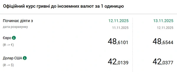 Национальный банк Украины (НБУ) повысил курс доллара к гривне. Валюта США подорожала на 2 копейки. Об этом сообщает РБК-Украина со ссылкой на данные на сайте регулятора. Официальный курс доллара на 13 ноября 2025 года установлен на таком уровне: 42,0377 гривны за 1 доллар (+0,02 грн). С начала года курс года курс доллара повысился на 1 копейку. 1 января 2025 года американская валюта стоила 42,02 гривны. При этом с 1 ноября курс доллара стал больше на 6 копеек. В начале месяца его стоимость составляла 41,97 гривны. Официальный курс евро на 13 ноября составляет 48,6544 гривны. Единая европейская валюта также подорожала. По сравнению с 12 ноября ее стоимость увеличилась на 4 копейки.