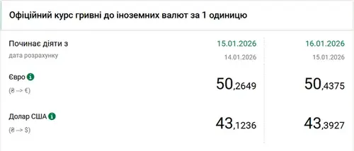 Нацбанк, после недолгого периода снижения официального курса доллара, снова поднял стоимость валюты США и установил ее на рекордном уровне — 43,39 гривен. Об этом сообщает РБК-Украина со ссылкой на данные на сайте регулятора. Официальный курс доллара на 16 января составил 43,39 гривен, что на 27 копеек выше значения предыдущего дня. Курс евро на 16 января установлен на уровне 50,44 гривен (+0,17 копеек к предыдущему дню). Средний курсы покупки-продажи доллара на наличном рынке выросли на 6-8 копеек — до 43,07-43,67 гривен. Курсы евро за этот период времени выросли на 5-6 копеек до 50,19-50,89 гривен. Напомним, официальный курс доллара увеличивался с 27 декабря до 13 января включительно до рекордного значения — 43,26 гривен. В 14-15-х числах происходило снижение курса. На 15 января официальный курс доллара составил 43,12 гривен. Курс евро на этот день был установлен на уровне 50,26 гривны. | |