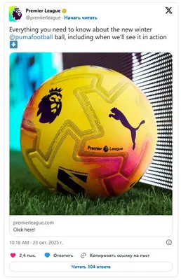 Английская Премьер-лига экспериментирует с видением мяча для игр и на сезон-2025/26 смоделировала новый образ для круглого. В недавно начавшемся сезоне команды, выступающие в Премьер-лиге, будет играть на поле с новым мячом, предназначенным для матчей, которые будут проходить в осенне-зимний период. Новый образ разработан техническим партнером - Puma - и выполнен в ярко-желтом цвете с оттенками розового. На официальном сайте АПЛ уже разместили информацию о том, что новый мяч будет апробирован на поле в игре 11-го тура английского чемпионата. Новым мячом первыми сыграют Тоттенхэм и Манчестер Юнайтед в матче, который состоится 8 ноября. | |