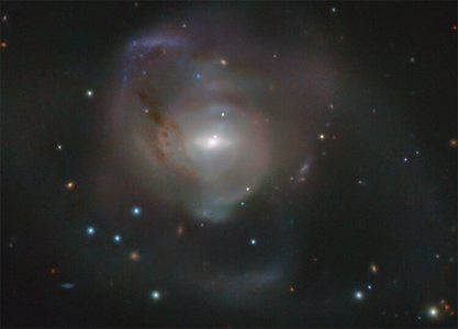 Европейская Южная Обсерватория (ESO, European Southern Observatory) обнародовала снимок галактики NGC 7727, которая располагается на расстоянии приблизительно 89 млн световых лет от нас в созвездии Водолея, сообщает 3Dnews.Наблюдения говорят о том, что рассматриваемый объект сформировался в результате грандиозного «космического ДТП» — столкновения двух галактик. Это событие привело к слиянию взаимодействующих структур и образованию галактики большего размера. На то, что NGC 7727 родилась в результате столкновения двух других галактик, указывают неправильная форма запечатлённой структуры и звёздные потоки, заметные в её периферийных областях. Снимок получен на Обзорном телескопе ESO VLT (VST) в Чили в рамках программы VST-ATLAS. Цель этого обзора — получить подробную карту огромной области южного неба. Изучая галактики, расположенные в этой зоне, астрономы надеются по-новому взглянуть на природу тёмной энергии, которая, предположительно, вызывает ускоряющееся расширение Вселенной. | |