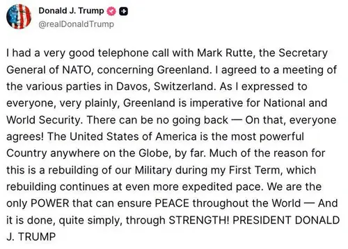 Трамп созывает встречу в Давосе по Гренландии после разговора с генсеком НАТО | |