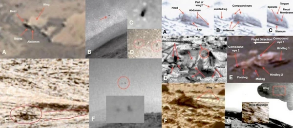 Исследование изображений с марсоходов NASA породило интригующие предположения о внеземной жизни на Красной планете. Профессор Университета Огайо Уильям Ромозер идентифицировал то, что он считает существами, похожими на насекомых и рептилий. В течение многих лет ученые использовали марсоходы для поиска признаков прошлой или настоящей жизни на планете, концентрируясь в первую очередь на химических признаках или микробных окаменелостях. Однако данные результаты представляют альтернативную теорию: Марс может быть убежищем для существ, подобных насекомым и рептилиям. Его анализ, основанный на изображениях с Curiosity, предполагает, что некоторые особенности, видимые на фотографиях, имеют поразительное сходство с земными членистоногими и рептилиями, пишет The Daily Galaxy. Похожие на насекомых формы жизни, запечатленные марсоходамиИсследование сосредоточено на изображениях с марсохода NASA Curiosity, на которых, по утверждению Ромозера, он идентифицировал несколько насекомоподобных существ в полете или в состоянии покоя. Эти организмы, которых профессор Уильям Ромозер называет "пчелами", по-видимому, обладают чертами, схожими с земными насекомыми, включая сегментированные тела, крылья и суставчатые придатки. В одной из его находок запечатлено существо, выполняющее акробатический полетный маневр, круто пикирующее перед выравниванием, подобно насекомому на Земле.
